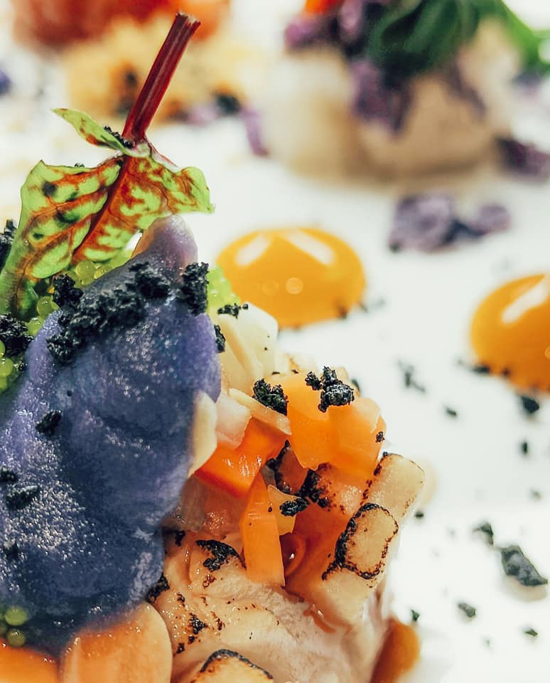 IN TEMPURA PANKO CON RICOTTA AL LIMONE E EMULSIONE DI DATTERINI